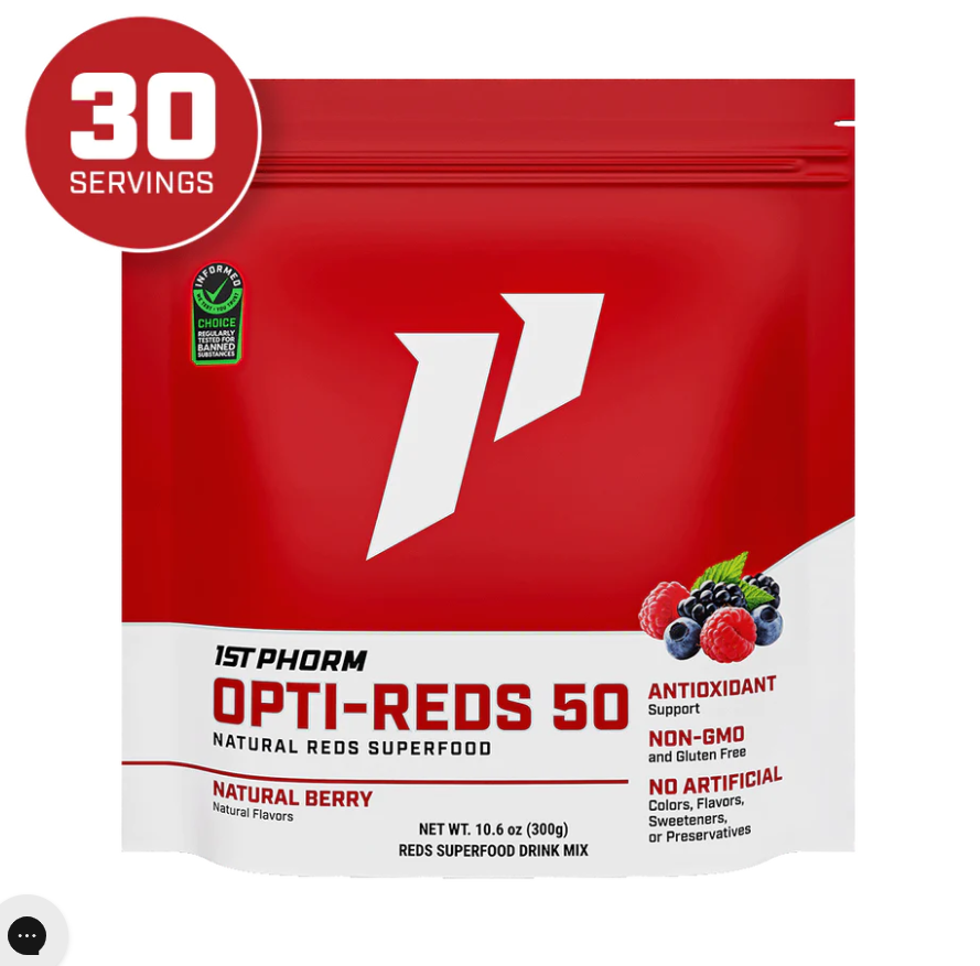 Opti-Reds 50™ is packed full of 50 hand-selected, colorful fruits, vegetables, and herbs that are blended together to produce a delicious reds powder. This combination of ingredients is intended to create a powerful superfood reds powder to help quench free radical production, support metabolism at the cellular level, and help optimize nitric oxide production in the body.*