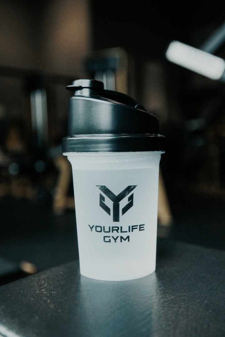 Our shaker bottle is a push top that is threaded onto a clear container, both the top and logo are in black. This particular shaker model comes with a screen filter instead of a spring-style shaker ball. This shaker bottle can hold up to 18 oz of liquid and is a shorter style of shaker.